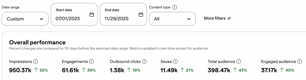 Saw a 62,000%+ increase in website traffic from Pinterest after we optimized their pins and blog strategy – going from almost no Pinterest-driven traffic to 1,800+ visitors landing directly on their site.